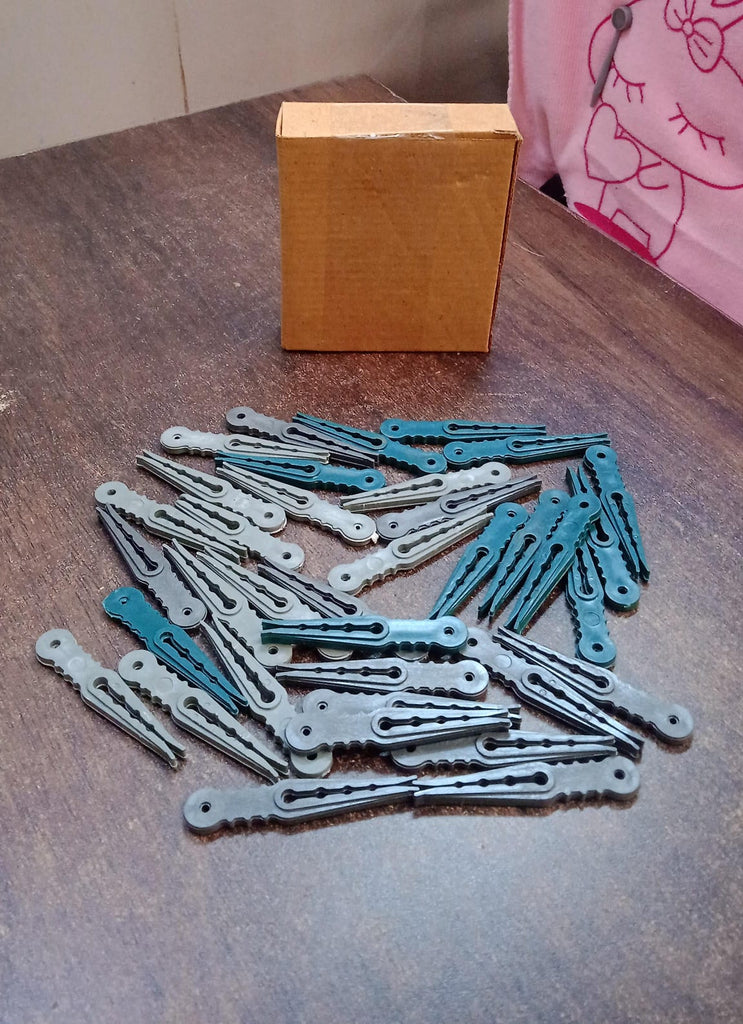 These Cloth Clips cling to your clothes as they dry in the sun and keeps them from flying off in strong winds. These plastic clips with stainless steel grips remain rust free for long and are an essential laundry accessory for every home and household. They come in assorted colour.
