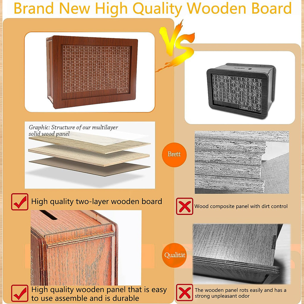 • 3.[EASY TO USE]: The detachable wooden piggy bank can be assembled in just a few steps. In addition, when you have saved the target amount, you only need to remove the wooden board at the back to easily take out all the money.
